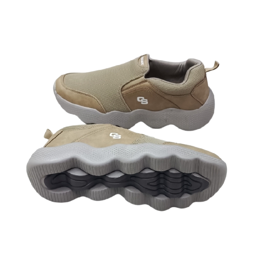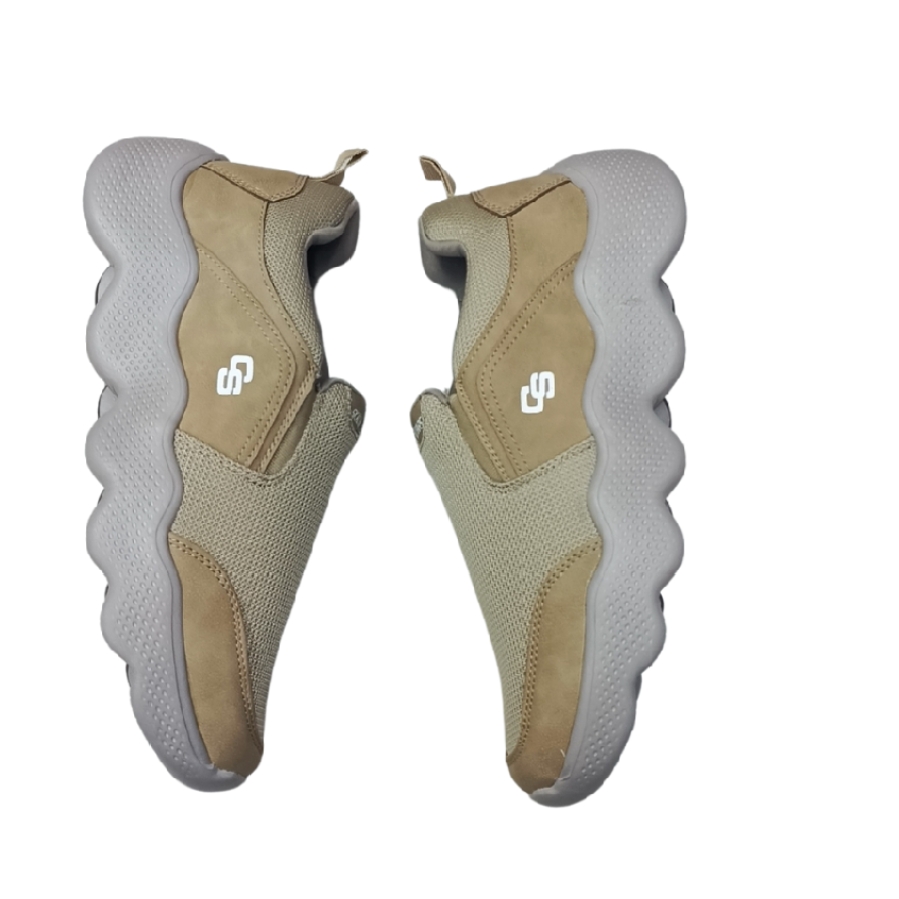 The **upper** is crafted from **premium breathable mesh fabric** that allows maximum airflow to keep your feet cool and dry. Complemented by **soft suede overlays**, it delivers extra durability and a refined, modern look. The **neutral beige tone** adds a versatile appeal, easily pairing with jeans, joggers, or casual trousers.