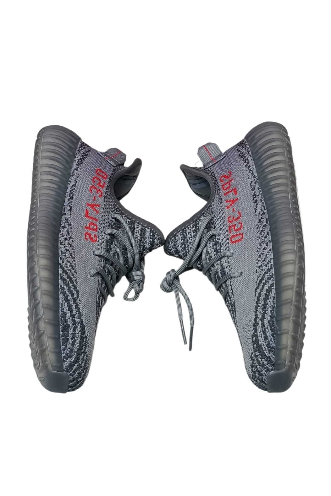 • Upper: The upper of the Yeezy Boost 350 V2 “Beluga” is constructed using a breathable Primeknit material that gives the shoe a comfortable, sock-like fit. The color of the Primeknit is primarily a bold “Beluga” grey, which is a vibrant, almost orange-toned grey, creating a striking and dynamic appearance.